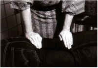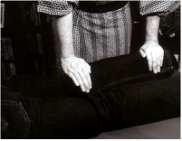 18) LEGS: By placing one hand at the top of the leg (just below the buttock) and the other hand on the back of the knee, creates a conduit of energy. Next, switch hands and place one hand on the back of the knee, and the other, on the ankle. Repeat on both legs.