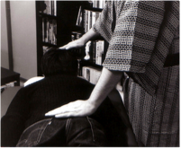 CLOSING 5: Brush off the shoulders three times. This cuts the energy flow, ending the treatment for this session.