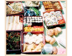 Many families purchase ready-made osechi ryouri at their local supermarket, or order the boxed meal in advance from a favorite restaurant, which cuts the preparation time down even more. These are delicately arranged in faux lacquer boxes.