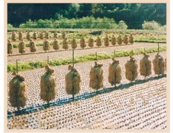 Autumn in Japan, just like in Indiana, signals not only the end of summer, but harvest time. The telltale sign that fall has arrived in Japan is the hustle-bustle of the farmers who work feverishly from sunup to sundown to bring in their crops.