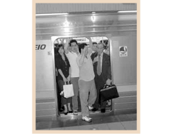 When the train doors open, people are literally belched out - pouring forth like ants from a mound after it has been disturbed. In the early morning, on certain train routes, special "pushers" are placed strategically on the platform to help get the stragglers squeezed in as the door closes.
