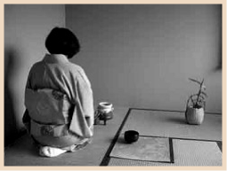 Each guest upon entering the tea room reverently admires the scroll hanging in the alcove (selected for the occasion and the season). They then seat themselves around the edge of the room in the order they decided earlier during the cleansing in the garden.